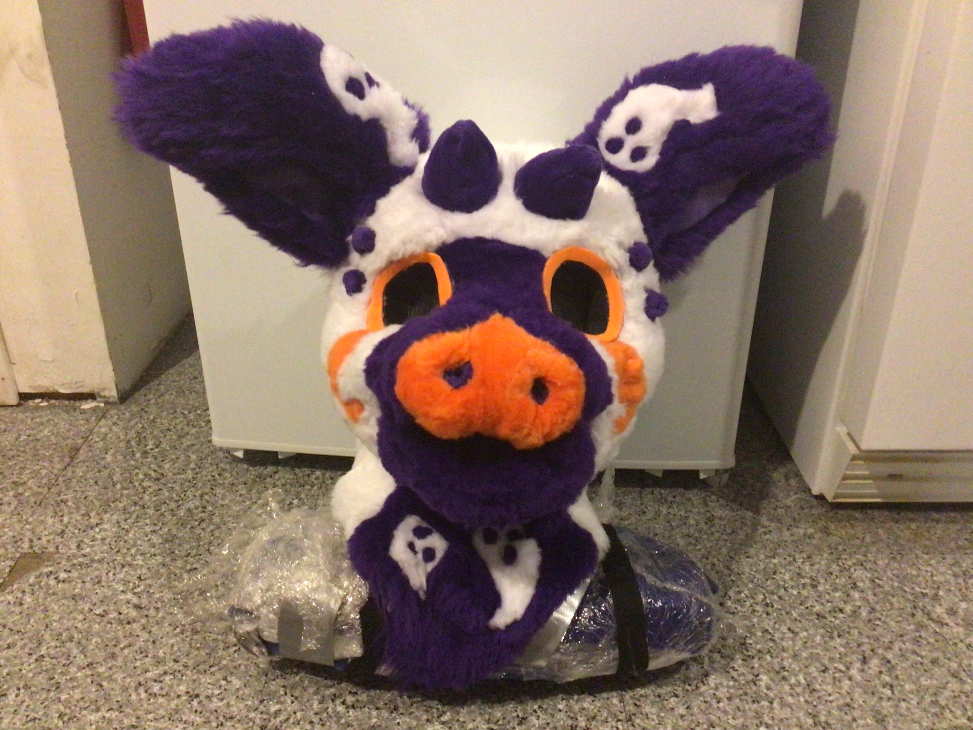 Just a head. Comes with 3D-printed and hand-painted eyes, custom lining (with print of choice), and 2 fur and minky colours by default.